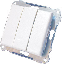 Tuotekuvaus: 3 x 1-napainen, jousiliittimin, uppoasennettava kytkin kuiviin tiloihin.